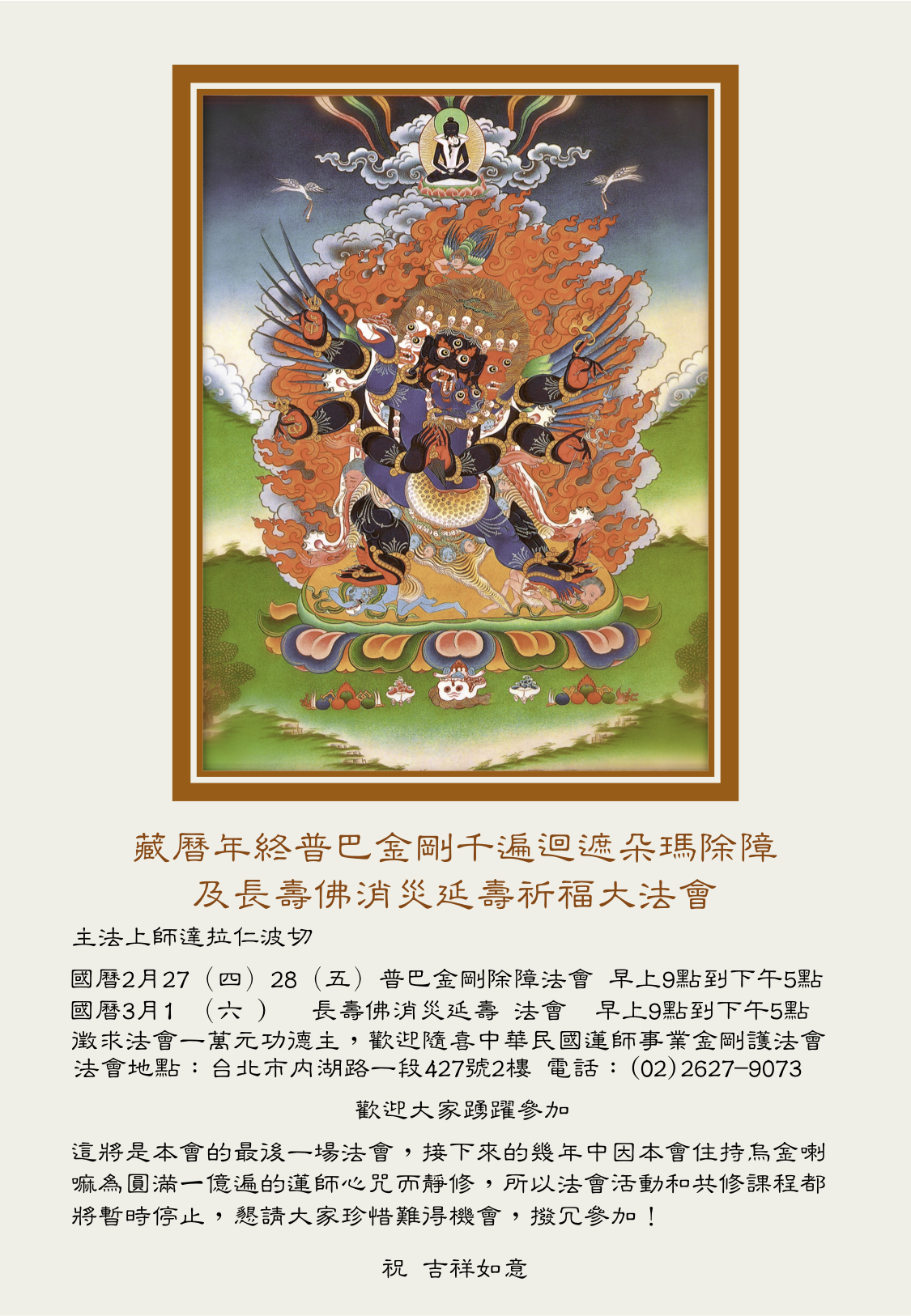 2/27開始三天藏曆年終普巴金剛千遍回遮朵瑪除障及長壽佛消災延壽祈福大法會