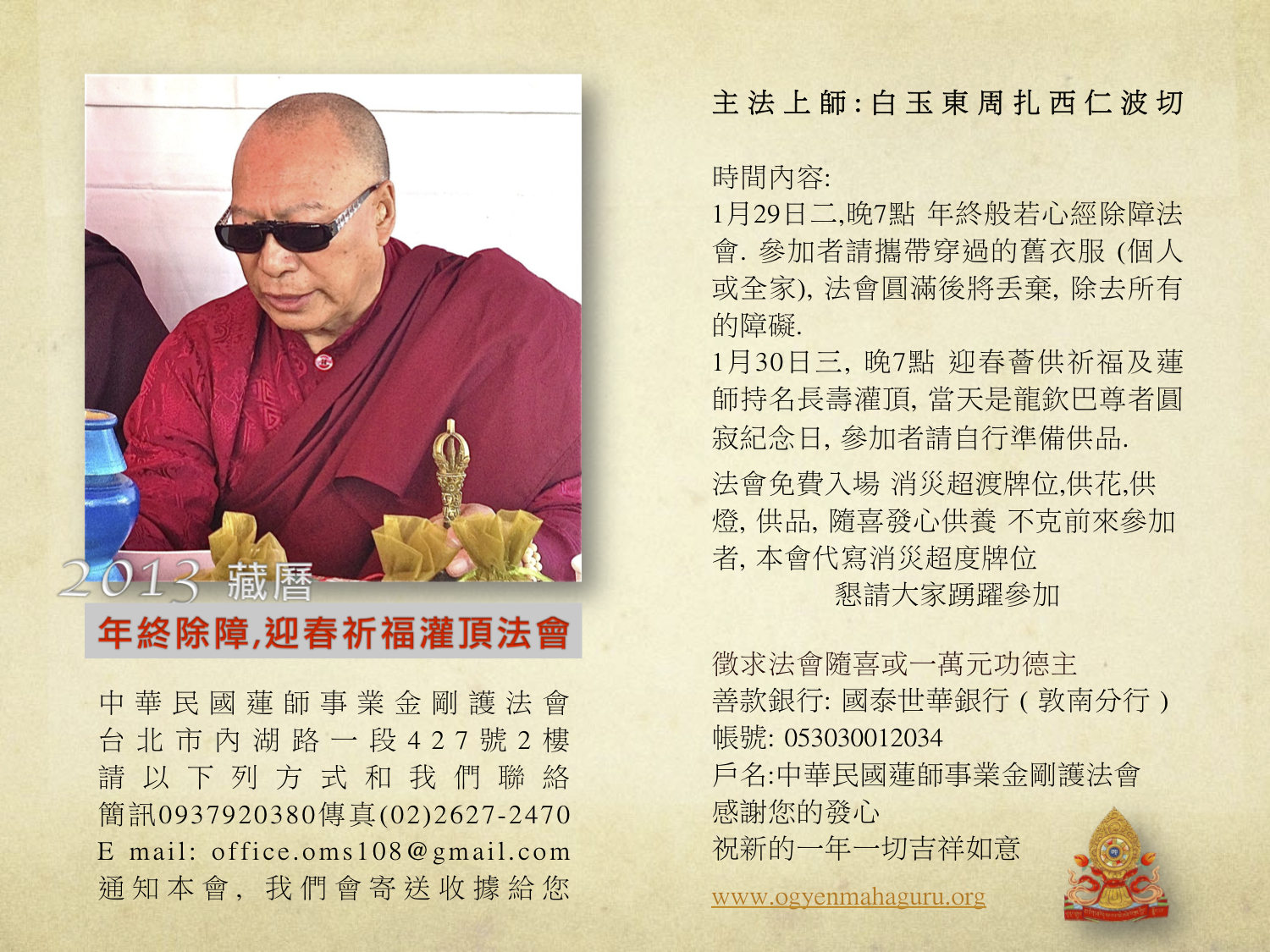 2013藏曆 年終除障 迎春祈福灌頂法會